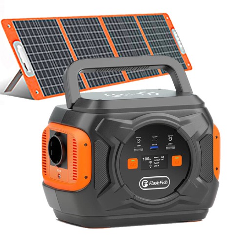 Przenośna elektrownia Flashfish A301 + Panel słoneczny Flashfish 100 W: Przenośny generator słoneczny Flashfish do kempingu samochodowego na świeżym powietrzu.
