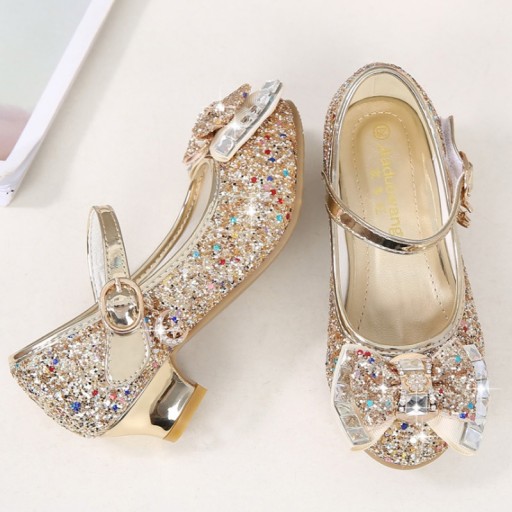 Kryształowe pantofelki pięknie błyszczą i cudnie wyglądają na nóżce. Niewielki obcas to marzenie każdej dzieczynki.