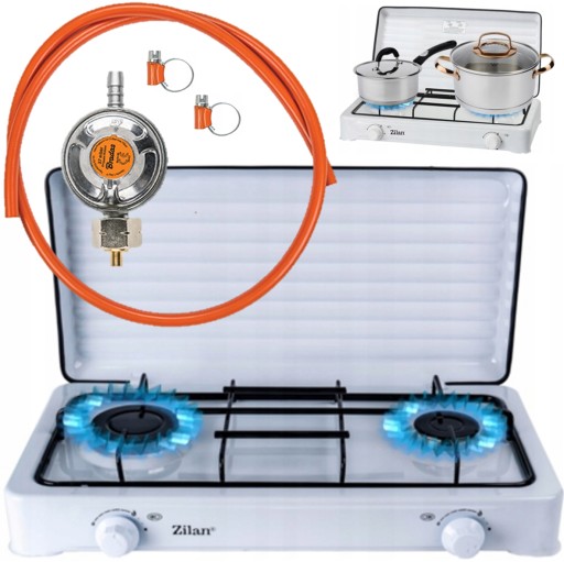 KUCHENKA GAZOWA 2 PALNIKI PRZENOŚNA + WĄŻ + REDUKTOR