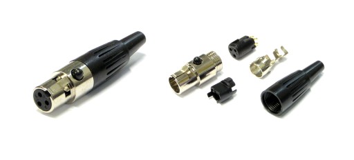 Wysokiej jakości gniazdo mini XLR 3 pinowe przeznaczone do montażu na kabel.