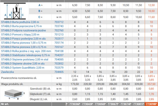 STABILO 100 RUSZTOWANIE ALU. JEZDNE 12,50M