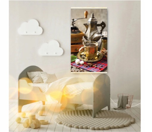 Główna część grzejnika wykonana jest z odpornej na zaginanie i łamanie polimerowej folii grzewczej, na którą nakładana jest grafika ze wzorem. Całość spięta jest drewnianymi listwami.