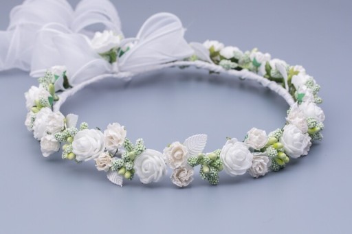 Unikalny wygląd wianka komunijnego , starannie dopasowane kwiaty i dodatki dopełnią odświętnystrój komunijny .