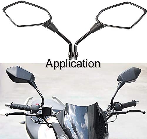 Ta para uniwersalnych lusterek do skuterów Moto (1 lusterko po lewej + 1 po prawej) została wyprodukowana w doskonałej jakości i wykonaniu, z bardzo eleganckim i sportowym designem. ŁATWA INSTALACJA: Lusterka można legalnie zainstalować, obracać i regulować, aby uzyskać lepszą widoczność, zoptymalizować widok dzięki szerokiemu kątowi roweru lub motocykla. Lusterka są przykręcane i posiadają gwint M10. Lustra można obracać o 360°, kąt można dowolnie regulować, dzięki czemu pole widzenia jest bardziej otwarte. Trwałe i trwałe: te stylowe lusterka wsteczne mają mocną konstrukcję ABS, która idealnie pasuje do Twojego motocykla. Nadaje się do większości marek motocykli, motocykli ulicznych, ATV, Dirt Bike, rowerów BMX i skuterów, takich jak Kawasaki, Suzuki, Honda, Victory, Cruiser Chopper itp.