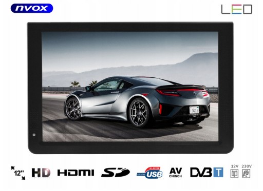 Telewizor LED 12" H.265/HEVC DVB-T/T2 HDMI VGA USB SD AV PVR MPEG-4/2 12V 24V 230V