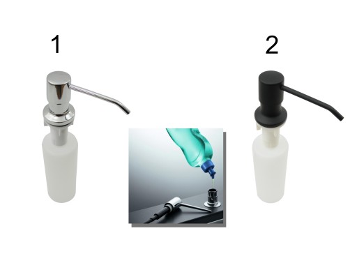 Możliwość zamontowania w zlewozmywaku kuchennym, blacie kuchennym. Pojemność pojemnika na płyn 350 ml