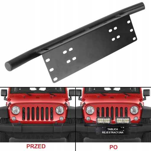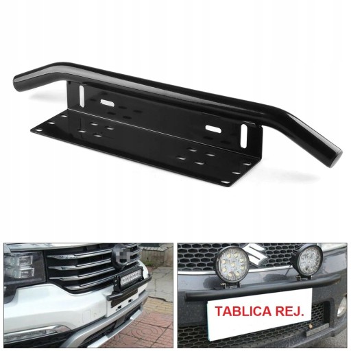 Uchwyt uniwersalny do mocowania lamp roboczych, paneli LED, halogenów w miejscu przedniej tablicy rejestracyjnej.