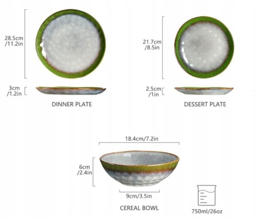 ✅ 8 miseczek o średnicy 18,4cm, wysokości 6cm oraz pojemności 750ml