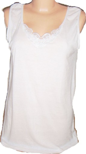Polecam nowy podkoszulek damski na szerszych ramiączkach wykończony z przodu koronką z bawełny 100%, bezszwowy po bokach, tkanina i ramiączka rozciągliwe, miękkie i miłe w dotyku,poręczna rzecz zarówno na lato jak i na zimę,bardzo ładny, gorąco polecam!