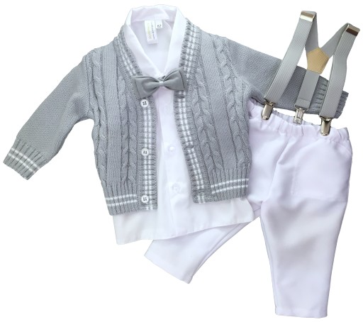 Формальный комплект, серо-белый, 86 см, Крещение, 12 месяцев