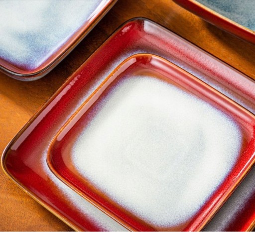 ✅ 4 talerze deserowe o wymiarach 18,8cmx18,8cmx2cm.