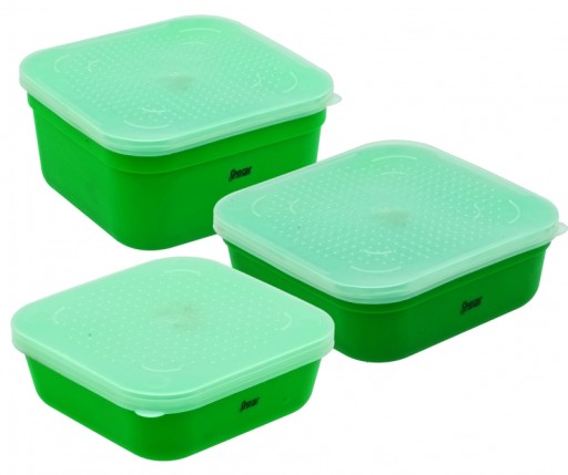Zielone pudełko z mikro do przetrzymywania przynęt gotowych do kontroli przed zawodami.