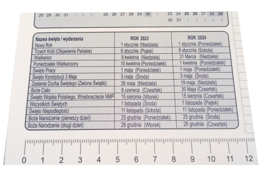TABELA Z OPISANYMI DATAMI I DNIAMI WOLNYMI OD PRACY