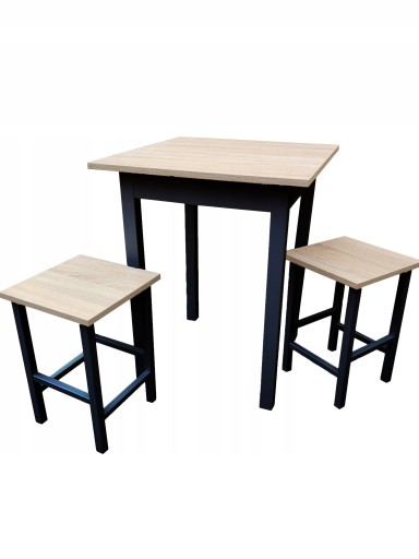 Komplet Stół 60x60 i Dwa Taborety Loft Klasyczny