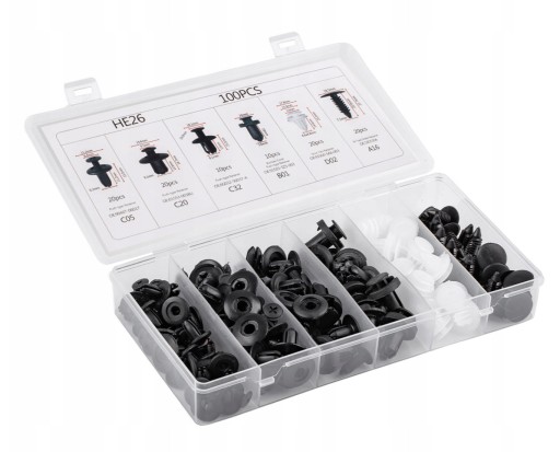 - Zestaw 100 uniwersalnych spinek samochodowych.