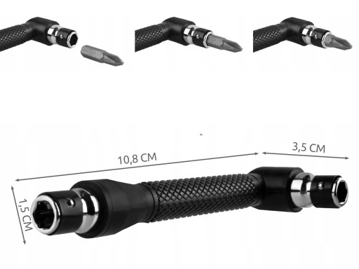 6-kątny uchwyt do bitów pozwala na wkręcanie czy też odkręcanie śrub pod kątem 90°, dzięki jego antypoślizgowej strukturze pozwala na bezpieczny chwyt nawet przy pracy nad głową w niedostępnych miejscach, tam gdzie inne narzędzia mają problem z dotarciem.