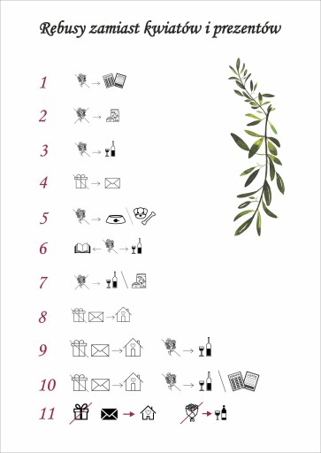 - W cenie zaproszenia wydrukowane jest w którym kościółku, gdzie przyjęcie, cytat oraz grafiki do wyboru co zamiast kwiatów lub prezentów, lub możesz przesłać nam własne propozycje.