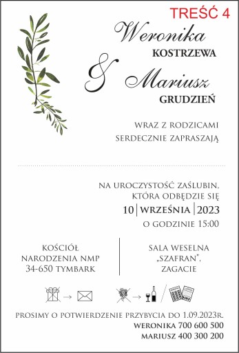 - Personalizacja GOŚCIE WESELNI wydrukowani w środku zaproszenia lub do własnego uzupełnienia