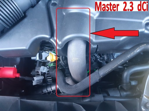 Przewód znajduje się nad silnikiem, między turbosprężarką, a intercoolerem.