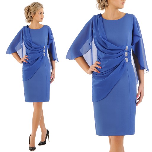Efektowna sukienka maskująca, wyszczuplająca sylwetkę, wykonana z delikatnej żorżety, na podszewce. Zapinana z tyłu na kryty zamek błyskawiczny. Produkt szyty w Polsce z wykorzystaniem najwyższej jakości tkanin.