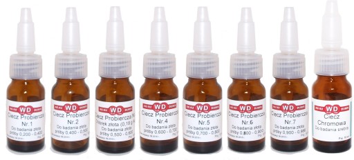 ZESTAW 9 CIECZY PROBIERCZYCH DO BADNIA ZŁOTA SREBRA PLATYNY!