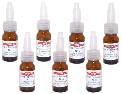 ZESTAW 7 CIECZY PROBIERCZYCH DO BADNIA ZŁOTA