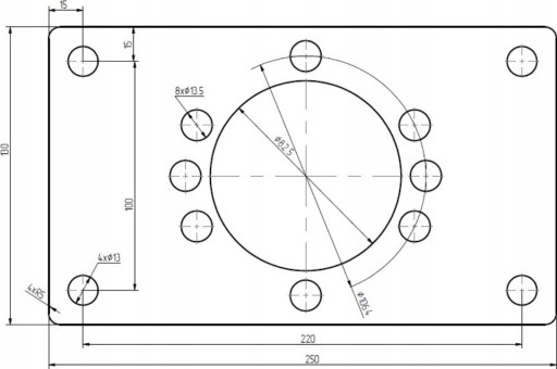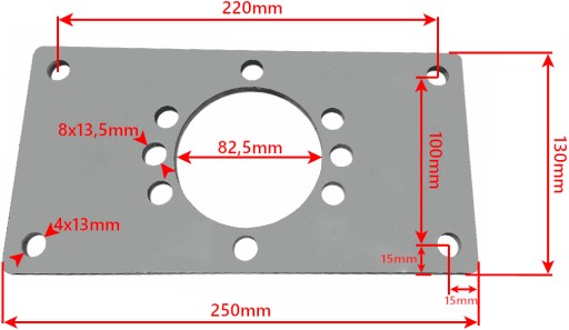 - średnica otworów do skręcenia z silnikiem: 13,5 mm (8x)