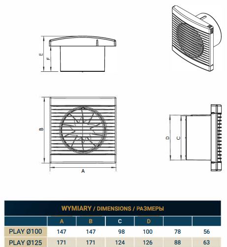 Решетчатый вентилятор PLAY для ванной комнаты fi 100 Стандарт, тихий