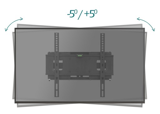 Uchwyt umożliwia skorygowanie poziomu potrzebne np. przy niezbyt dokładnym wywierceniu otworów w ścianie w zakresie -5° / +5°
