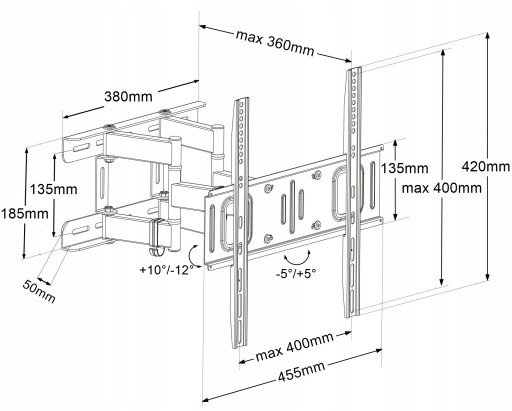 - ➡️Regulacja nachylenia (góra/dół) oraz obrotu (prawo/lewo) a także odległości od ściany