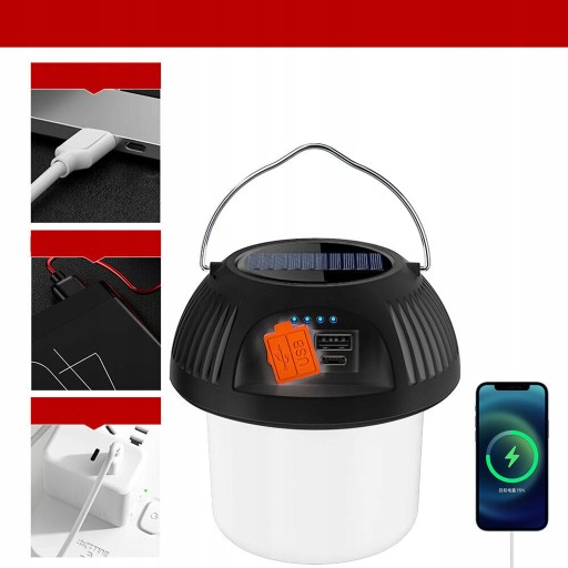 - Ładowanie awaryjne: Lampa kempingowa LED może być używana jako akumulator awaryjny do ładowania telefonu.