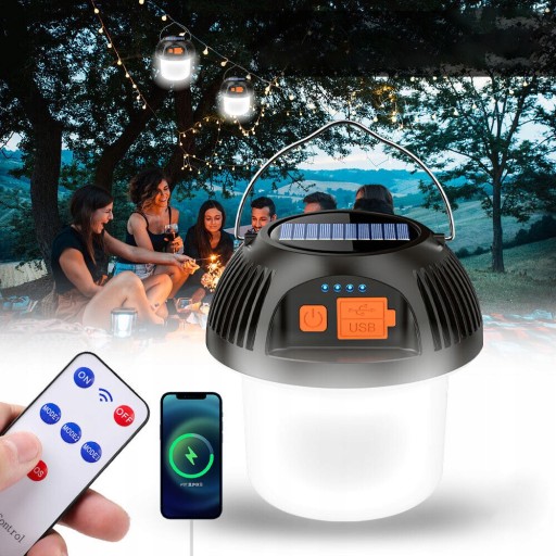 - Rodzaj produktu: Czarna lampa kempingowa ze zdalnym sterowaniem słonecznym