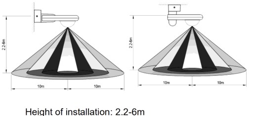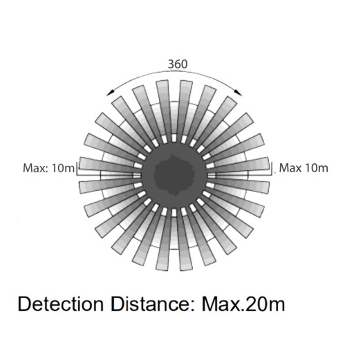 - Kąt / zasięg detekcji: 360 stopni / max. 20m (< 24°C)