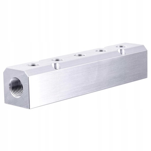 - Precyzyjnie wykonany aluminiowy rozdzielacz przeznaczony do stosowania w instalacjach pneumatycznych
