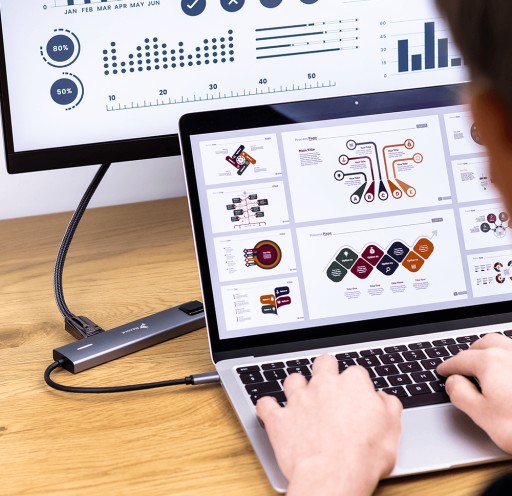 DisplayPort umożliwia szeregowe łączenie monitorów dzięki technologii MST. Oznacza to, że do jednego źródła można podłączyć dwa dodatkowe ekrany w rozdzielczości 4K. Dzięki temu wystarczy komputer połączyć z monitorem pierwszym przewodem DisplayPort, a następnie monitor z dodatkowym ekranem drugim przewodem DisplayPort. Aby móc skorzystać z tej funkcji, Twoje monitory oraz komputer muszą obsługiwać technologię MST.