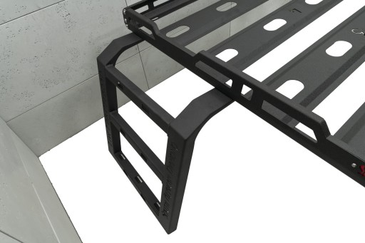Idealnie dopasowany do dachu Wranglera, doskonały do przewożenia dodatkowego bagażu na wyprawy, sprzętu kampingowego itp. Pozwala na proste i szybkie zabezpieczenie przewożonego ładunku. Zintegrowana drabinka ułatwia przyjęcie wygodniejszej pozycji podczas umieszczania załadunku na dachu, co znacznie usprawnia ten proces. Wytrzymała, a zarazem lekka konstrukcja bagażnika pozwala na przewożenie do 100 kg ładunku. Specjalna konstrukcja pozwala na montaż do 4 dodatkowych lamp LED.