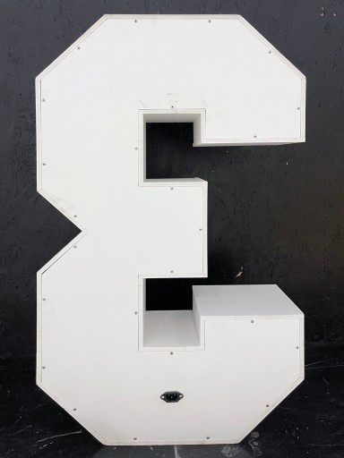 Wysokiej jakości cyfra przestrzenna 3, podświetlana energooszczędnymi żarówkami LED o wysokości 100cm.