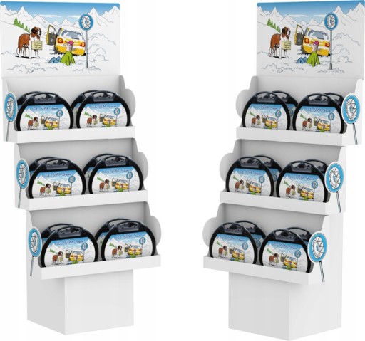 Polska edycja austriackich łańcuchów śniegowych Ice Star. Projekt etykiety głównej opakowania przygotował - wszystkim bardzo dobrze znany - Andrzej Mleczko.