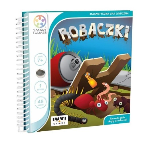 "Robaczki" to magnetyczna gra logiczna, oparta na znanej i lubianej serii "Zabawa w Chowanego". Posługując się wskazówkami, wspólnie rozwiążecie 48całkiem nowych zagadek. Pomóżcie nieśmiałym owadom skryć się pod kamieniami, i pozostawcie tylko te, które są wymienione w zagadce. To takie proste! Podobnie jak w poprzednich odsłonach, tak i tym razem atrakcyjne wykonanie sprawi, że dziecko będzie naturalnie zachęcane do zabawy. Dzięki magnetycznym elementom, w grę można zagrać w dowolnym miejscu, a nawet w czasie podróży!