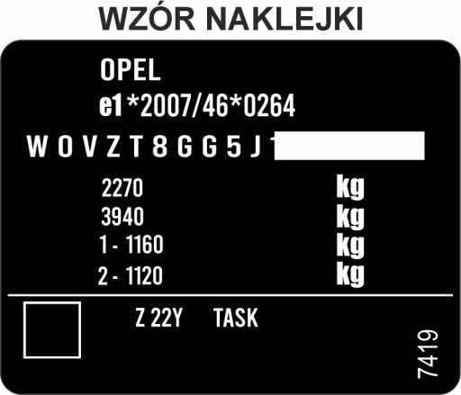 Nasza oferta dotyczy odtworzenia naklejki, tabliczki znamionowej marki OPEL. Naklejki, tabliczki wykonywane są na profesjonalnych foliach marki 3M oraz aluminium wykorzystywanych w identyfikacji pojazdu.