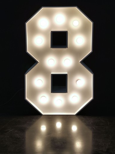 Wysokiej jakości cyfra przestrzenna 8, podświetlana energooszczędnymi żarówkami LED o wysokości 100cm.