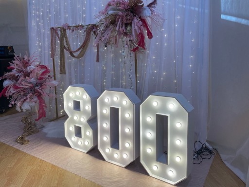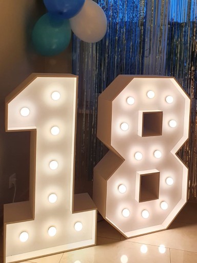 Świecąca dekoracja z cyfr doskonale udekoruje urodzinowe lub rocznicowe przyjęcie i nada mu wyjątkowej atmosfery. Podświetlane dekoracje liczbowe stanowią doskonały dodatek na różne okazje, takie jak: urodziny, rocznice, przyjęcia noworoczne, baby shower, czy imprezy firmowe. Duże, świecące cyfry świetnie ozdobią i rozświetlą parkiet, strefę wypoczynku czy ogród i stanowić będą oryginalne tło do zdjęć. W ofercie posiadamy wszystkie liczby: 0, 1, 2, 3, 4, 5, 6, 7, 8, 9 w różnych wersjach: czarnej, drewnianej lub z kolorowym oświetleniem, dostępne są na innych naszych aukcjach.