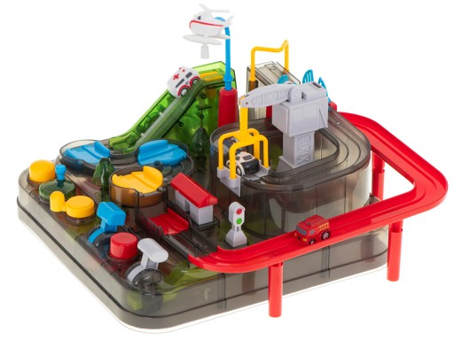 Wielofunkcyjny tor samochodowy będzie nie lada gratką dla żądnych przygód małych odkrywców.