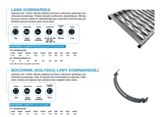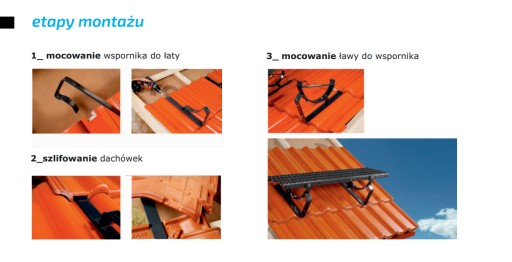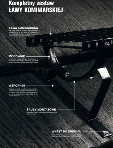 UWAGA - kompletny zestaw ławy ze wspornikami i mocownikami, dedykowany do pokryć dachówki betonowej, ceramicznej oraz karpiówki