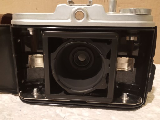 Na sprzedaż używany widoczny na zdieciach aparat fotograficzny w niezłym stanie : AGFA ISOLA I z pokrowcem .