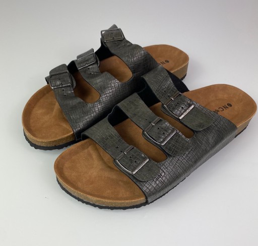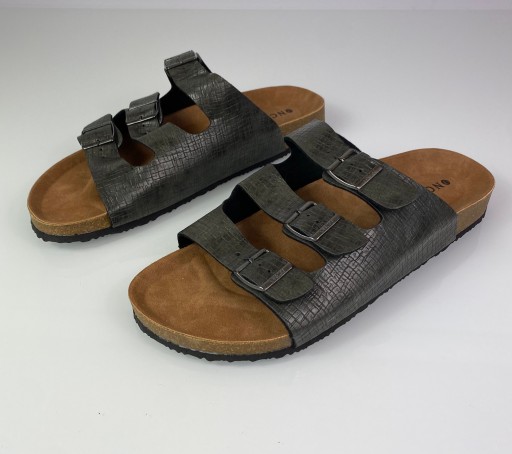 Klapki posiadają trzy regulowane paski, umożliwiające dokładne dopasowanie do stopy.