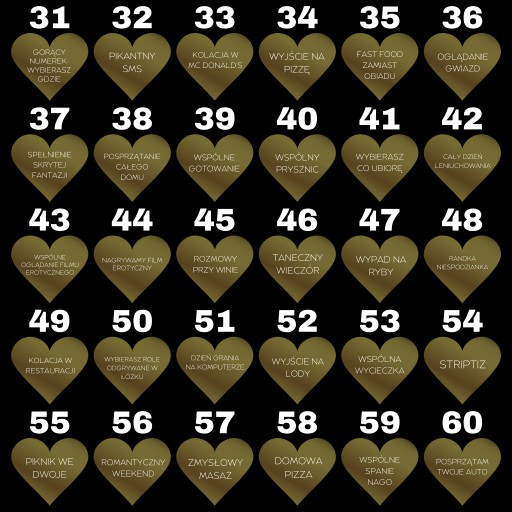 ✅kupony zawierają złotą zdrapkę w kształcie serca pod którą znajduje się wybrana przyjemność
