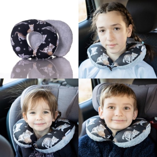 Dzięki zapięciu na nap poduszka nie wędruje po samochodzie tylko może zostać wpięta w zagłówek lub przypięta do pasa