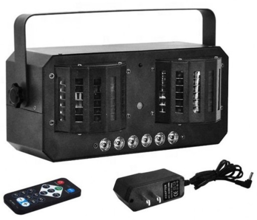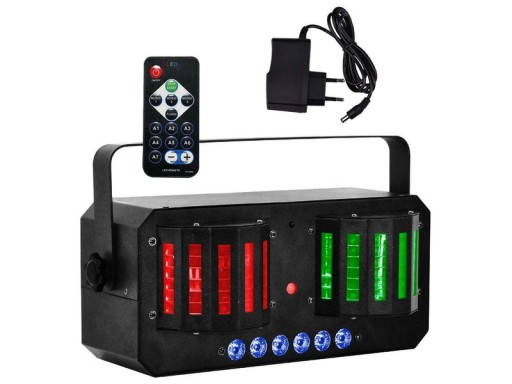 Efekt LED derby operuje w palecie barw RGBW. Każda dioda ma moc 3 watów. Uzupełniają go lasery sceniczne o łącznej mocy 150 mW oraz 6 białych diod LED o mocy 3 watów odpowiedzialnych za efekty stroboskopowe. Urządzenie może pracować w trybie automatycznym lub trybie sterowania dźwiękiem, dzięki wbudowanemu w korpus obudowy mikrofonowi. Może być również kontrolowane za pomocą bezprzewodowego pilota na podczerwień. Solidna, metalowa obudowa wyposażona została w uchwyt montażowy, dzięki któremu multiefekt LED może być instalowany na rampach i kratownicach. To bardzo wydajne i efektowne oświetlenie dyskotekowe.