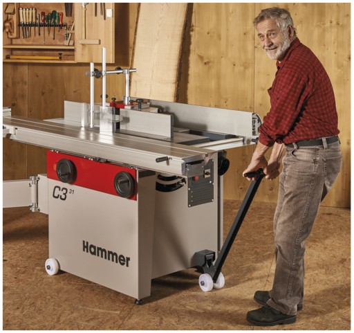 Obrabiarki do drewna Hammera są bez wątpienia mistrzyniami miejsca. Optymalna konstrukcja obrabiarki Hammera pozwala znaleźć dla niej miejsce nawet w najmniejszym zakładzie. W razie potrzeby system jezdny - pasujący do każdego Hammera - zapewni mobilność i tym samym dodatkową, wolną powierzchnię w zakładzie.
